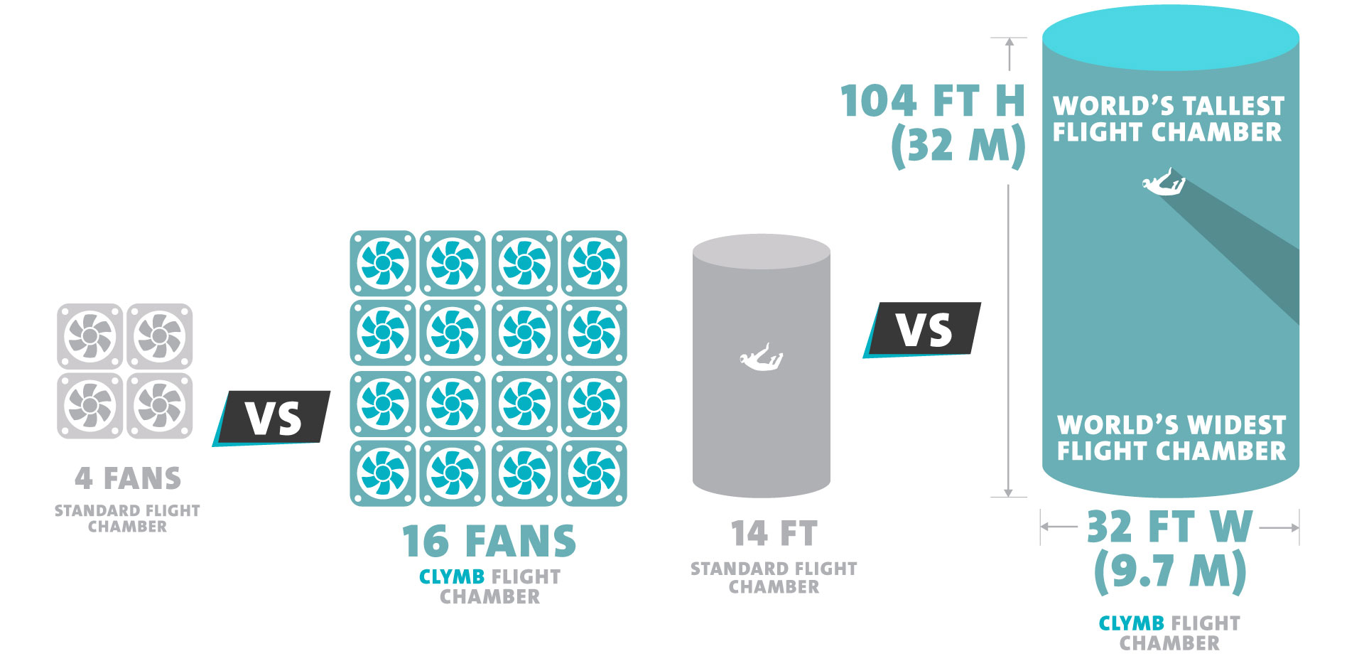 Get blown away in the world’s biggest indoor skydiving flight chamber with an unmatched width of 32 feet and a record-breaking height of 104 feet. Whether you are a beginner or an expert flyer, our skilled and trained instructors will guide you throughout your flight and depending on your level and comfort, they will help you develop your flying skills and teach you different flying positions as you progress.